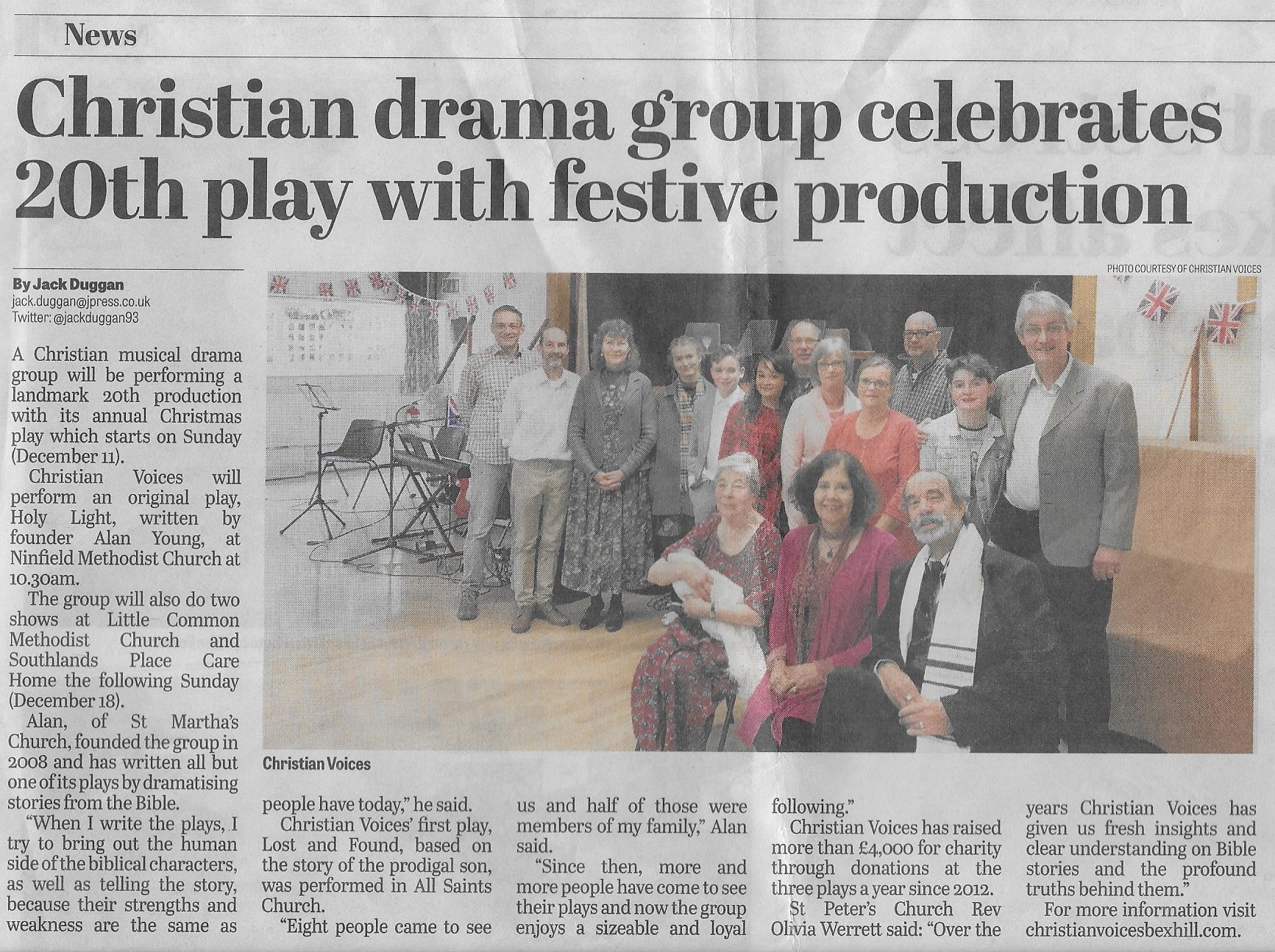 Attached is the announcement in the Bexhill Observer (Friday, 9th December 2016) of the dates for the performances and some quotes from the interested parties (including the clergy!)